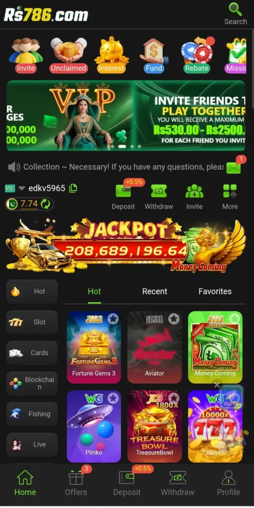 One of the biggest attractions of the RS786 App is its diverse selection of games. You can enjoy casino-style games, slot machines, lucky spins, color prediction games, and much more. Each game has its own set of rules and rewards, so you can explore different options to find your favorite.
