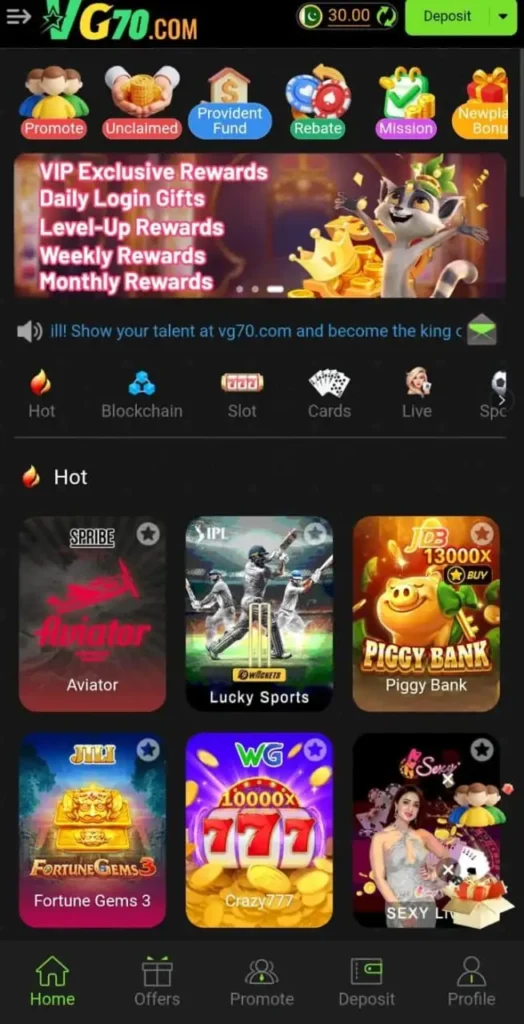 VG70 uses advanced encryption to protect deposits and withdrawals. Every financial activity remains safe, giving players complete confidence while using the app.